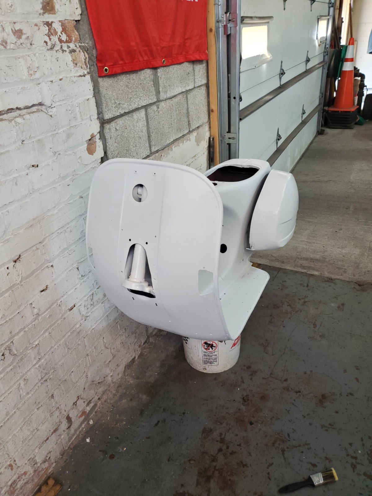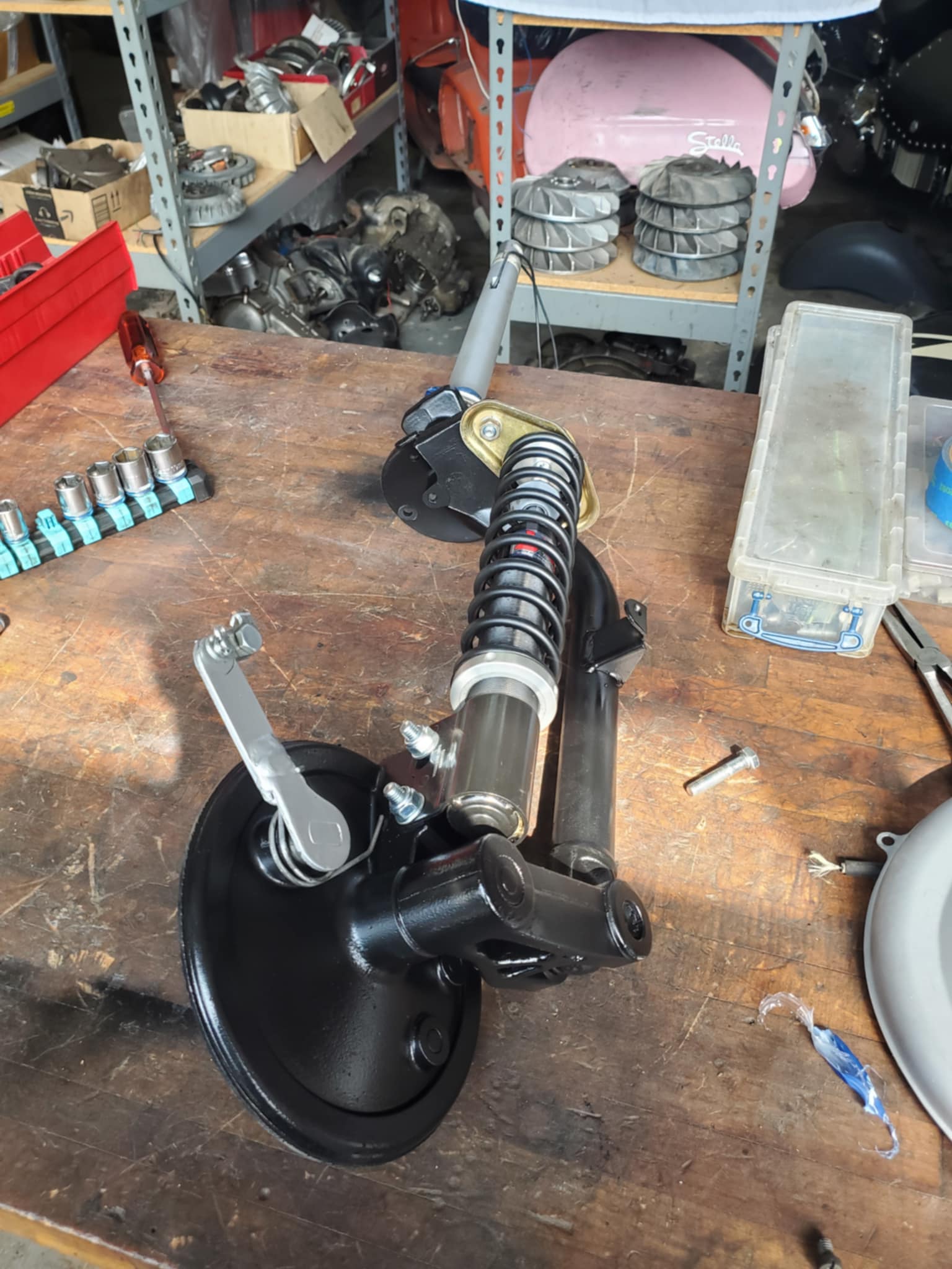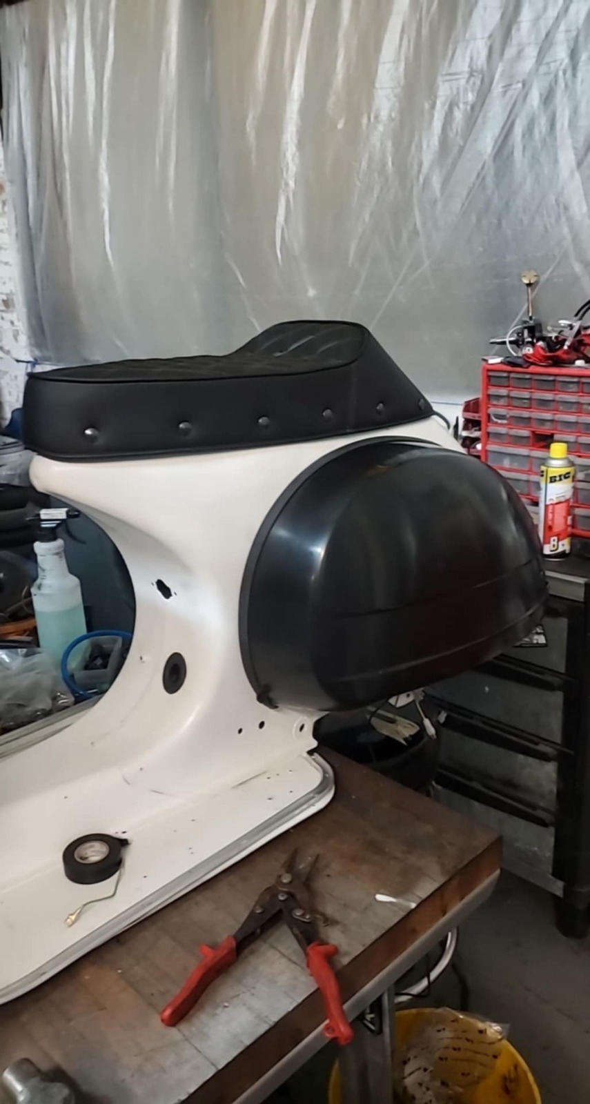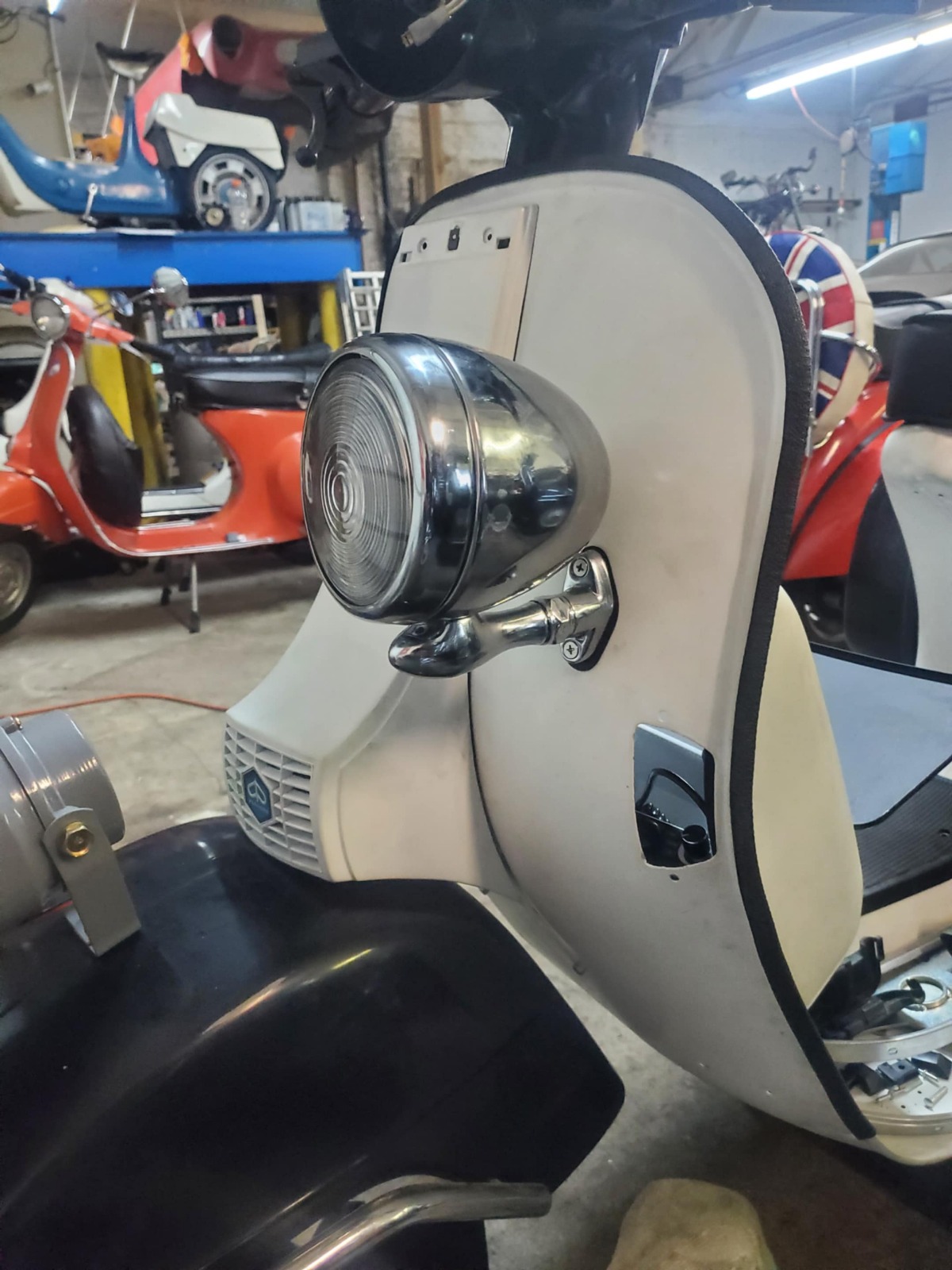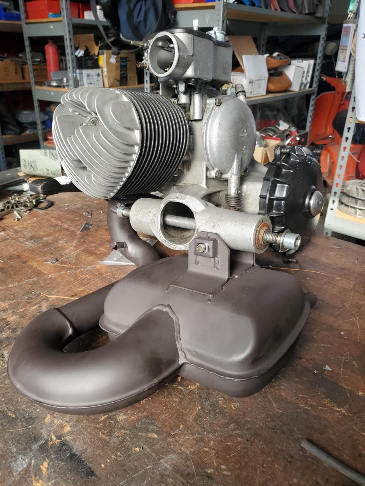 Where’re we at? With about a month to go, Ken at Vintage Scooter Centre has all the bodywork done and the frame is primed and ready for paint. It’s looking really good, Ken doesn’t mess around. We’re expecting some engine photos soon! Keep checking back or follow us on instagram for progress!